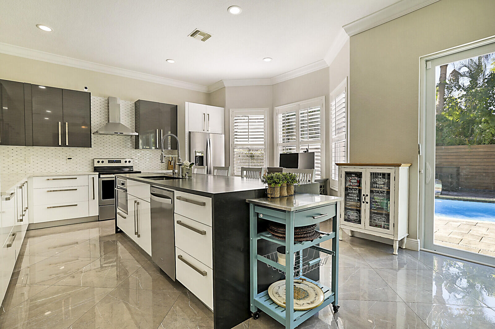 This beautifully upgraded 4 bedroom, 2.5 bath home with a 2 car garage delivers the ideal South Florida lifestyle. Enter through double impact doors to an open living and dining space featuring volume ceilings, recess lighting, crown molding and ceramic flooring throughout the main level. The renovated chef's kitchen showcases quartz countertops, a waterfall island, and abundant cabinetry. Impact sliding doors open to a private backyard oasis with a heated saltwater pool, outdoor kitchen, and outdoor shower. Marble staircases lead to the upper level where the oversized primary suite offers walk in closets and a private en suite bath. Additional bedrooms provide for guests, office, or family needs. Minutes from shopping, dining, beaches, and major highways. Inquire for more!!