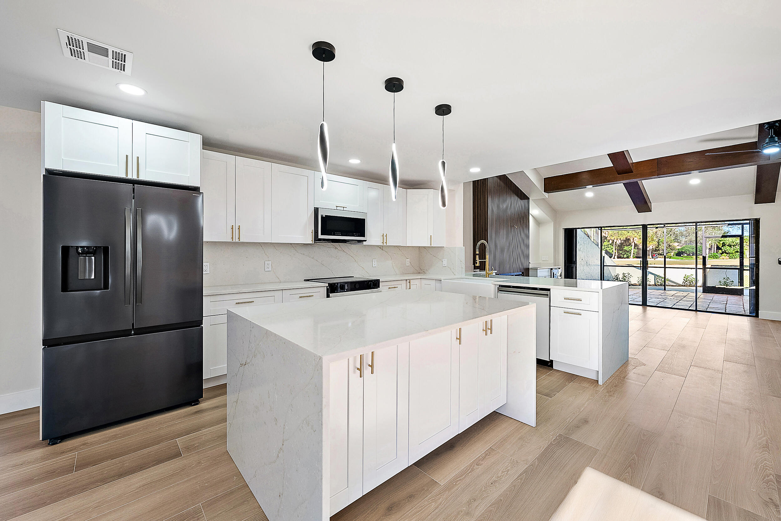 Welcome to 37 Edinburgh, one of a kind fully remodeled, large single story townhome in the highly sought after PGA National. Enjoy both serene lake views with expansive golf course fairways in your backyard. Homes like these are rarely available in Edinburgh. Perfectly